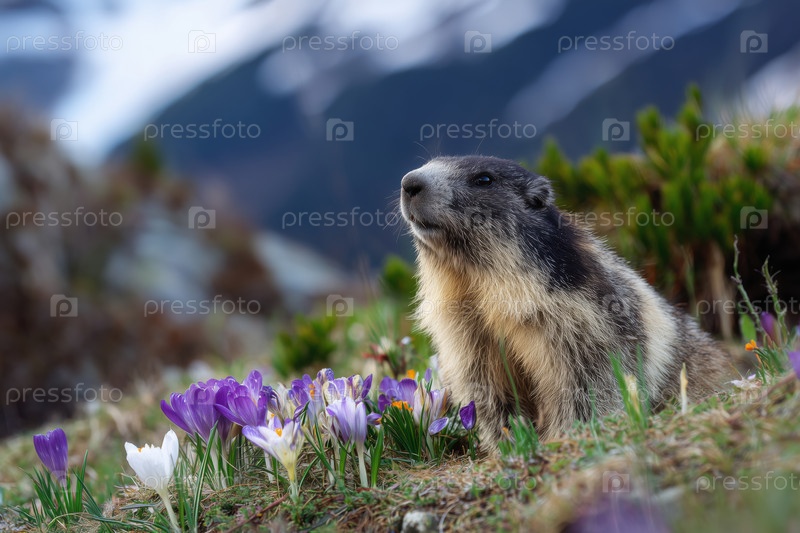 Морская в альпийской лужайке с цветами крокуса