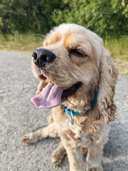 Счастливый спаниель на прогулке
