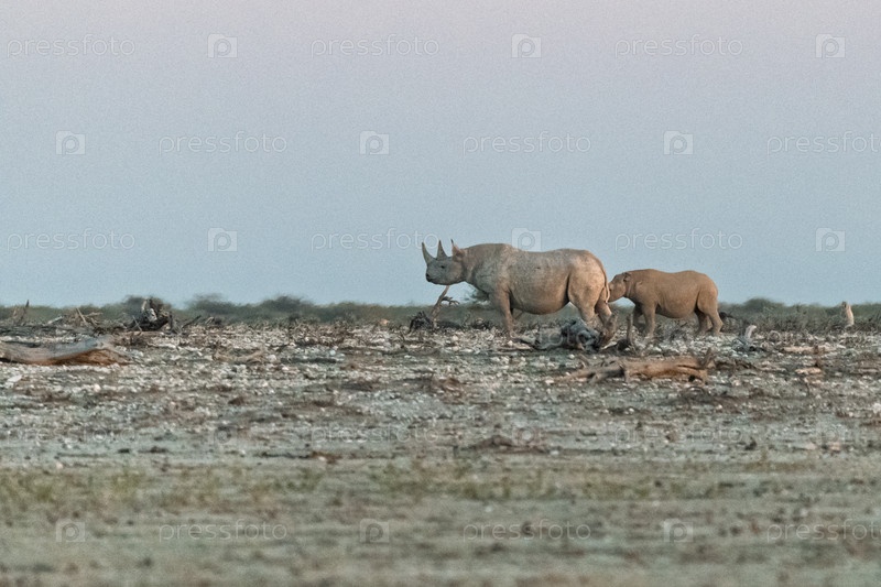 Семья носорогов в гармонии под африканским солнцем - животное Африки