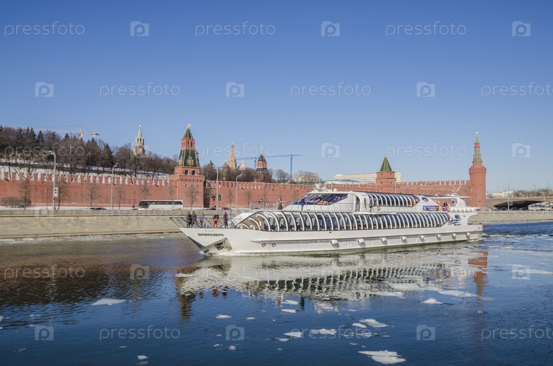 Весенний ледокол на Московской реке недалеко от Кремля
