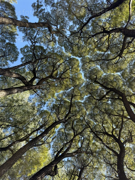 Деревья с застенчивой короной, ива вид снизу