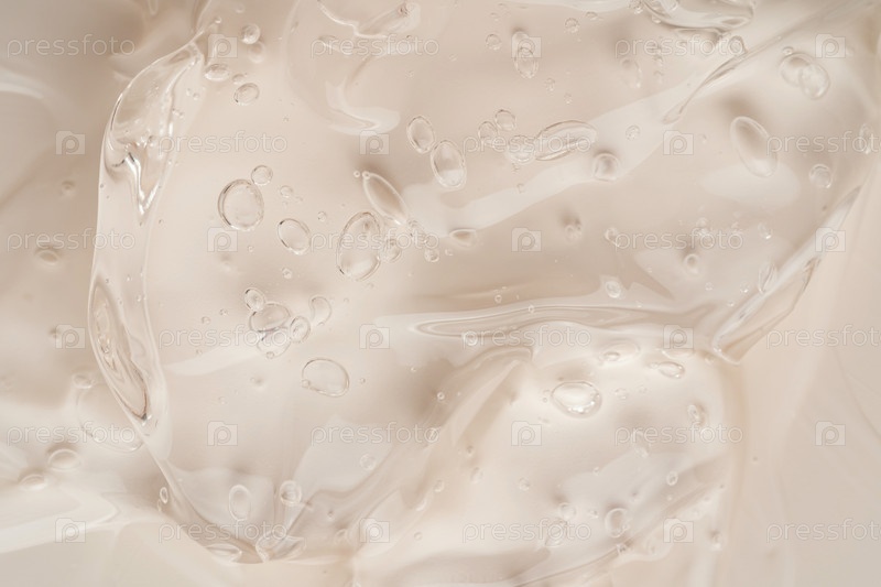 Бежевые косметические гелевые часы с глянцевой текстурой на нейтральном фоне, показывающие блеск макияжа сывороточного молока