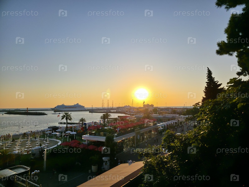 Сочи, пляж - вид с высоты красных зонтиков и моря