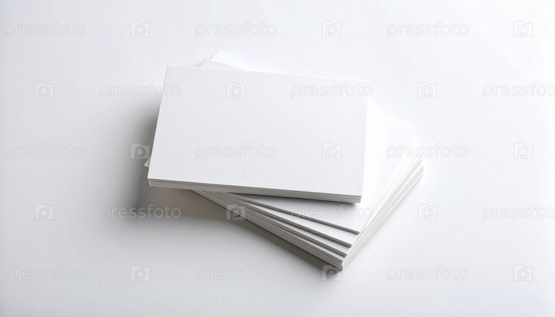 Стол пустых визитных карточек, символизирующих новое начало, возможности брендинга, минималистический дизайн или место для самоидентификации и творческого выражения