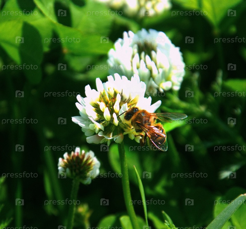 Пчела оп /ляет цветок/a bee pollinates a flower