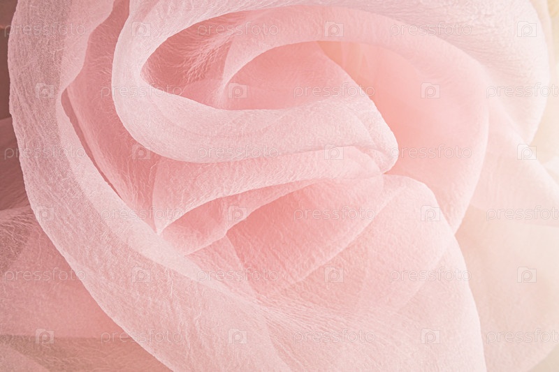 Красиво извилистые мягкие волны розовой шифонной ткани. Элегантная свадебная компоновка для дизайна. Праздничный фон для вашего текста