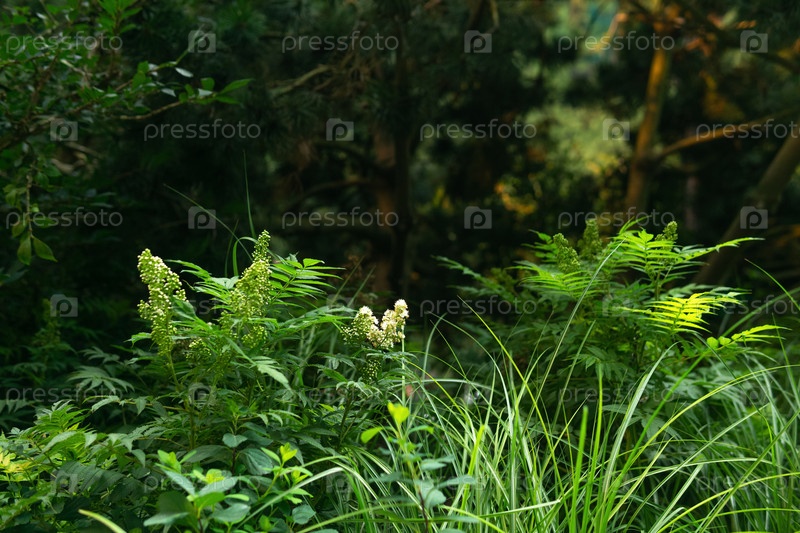 Красивые зеленые растения в лесу, ближайший снимок