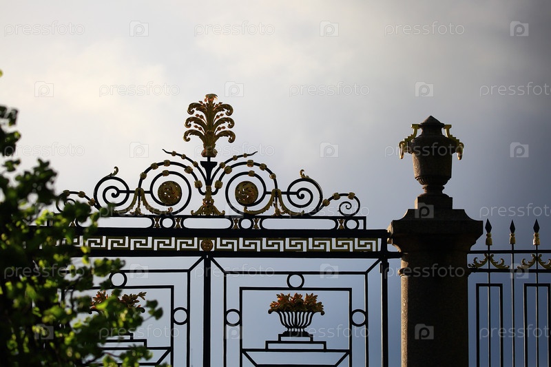 Санкт-Петербургская решетка Летнего сада на фоне штормового неба в солнечный вечер