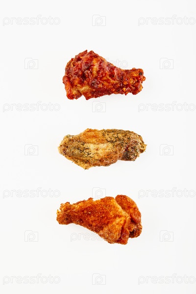 Три куриных крыльца в пекарне и другой соус на белом фоне