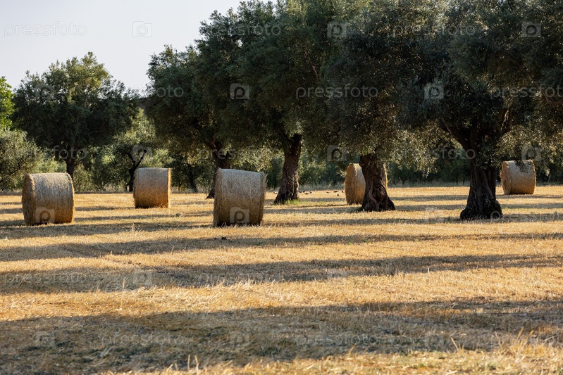Италия. Беллона. Поле с оливковыми деревьями и стогами сена. Италия. Беллона. Поле с оливковыми деревьями и стоками сена