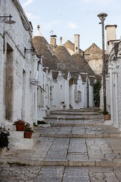 Италия. Альбарабелло. Вид на традиционные дома трюлли. Италия. Альберобелло. Вид на традиционные дома трулли