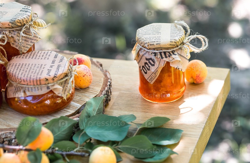 Сохранение и летний урожай. Домашнее здоровое желе, абрикосовый варенье. Консервы для приготовления пищи. Сладости и фрукты