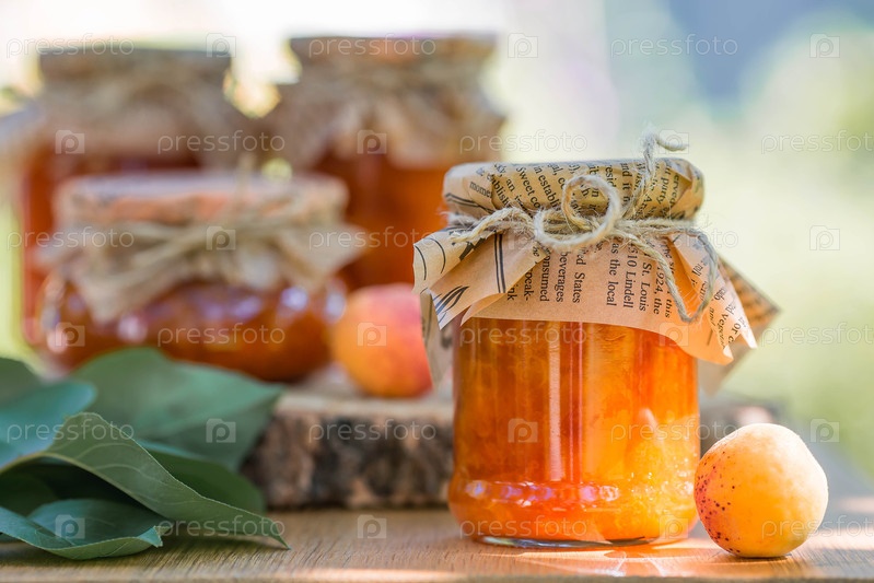 Сохранение и летний урожай. Домашнее здоровое желе, абрикосовый варенье. Консервы для приготовления пищи. Сладости и фрукты