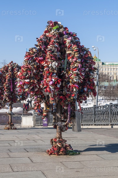 Дерево с свадебными замками в центре Москвы