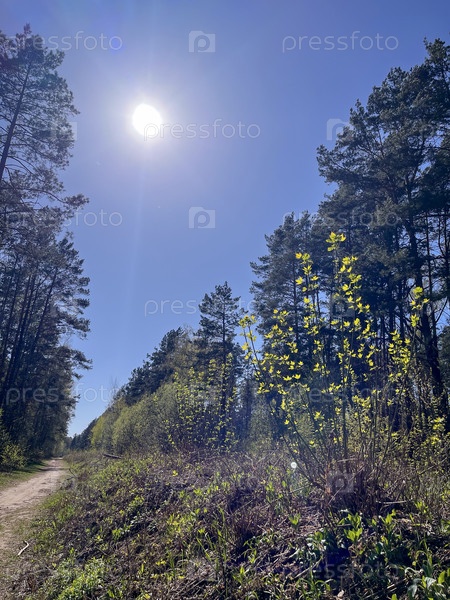 Молодые побеги на деревьях и кустарниках весной - весенний пейзаж, Беларусь