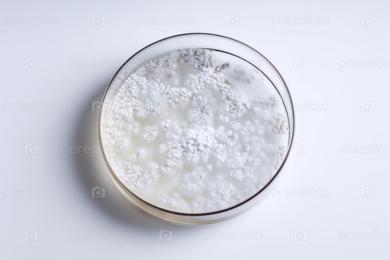 Бактериальные колонии на агаре в чашке Петри на белом фоне