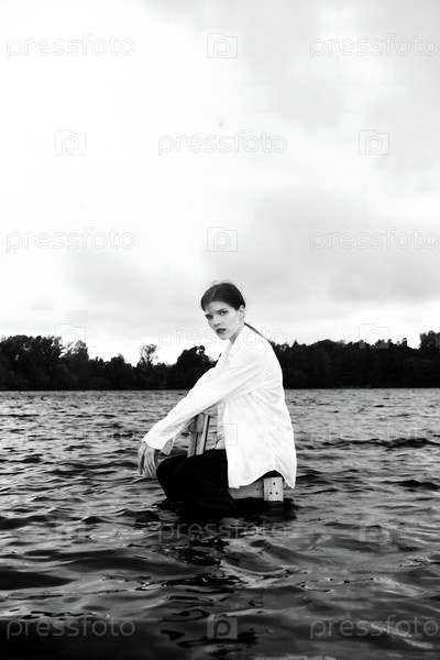 Девушка на стуле посреди озера