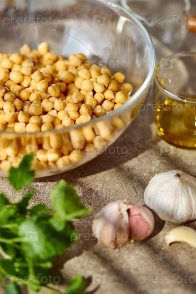 Курица, лимон, тахини и травы - ингредиенты для приготовления хумуса