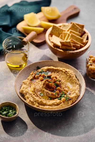 Вкусный хумус с оливковым маслом, горохом и петрушкой
