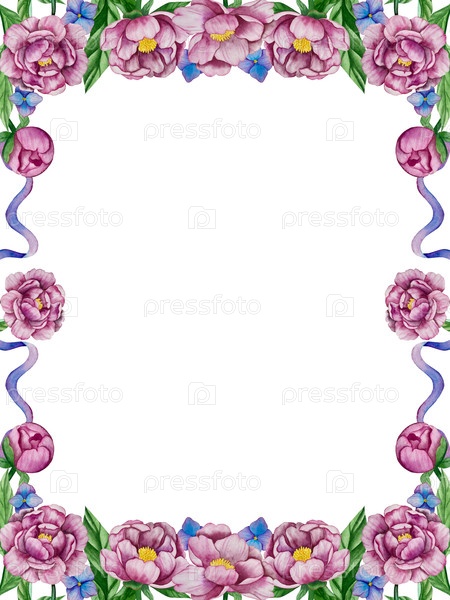 Розовые садовые цветы изолированы на белом фоне, акварельная иллюстрация. розовая букет цветов, бордонские пионы границы. фиолетовый гидрензия, рама, венок. летний дизайн. свадебное приглашение