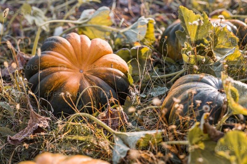 Осенний тыквенный фон. Богатый урожай тыквенной дыни в саду. Урожай. Концепция Хэллоуина или Дня благодарения