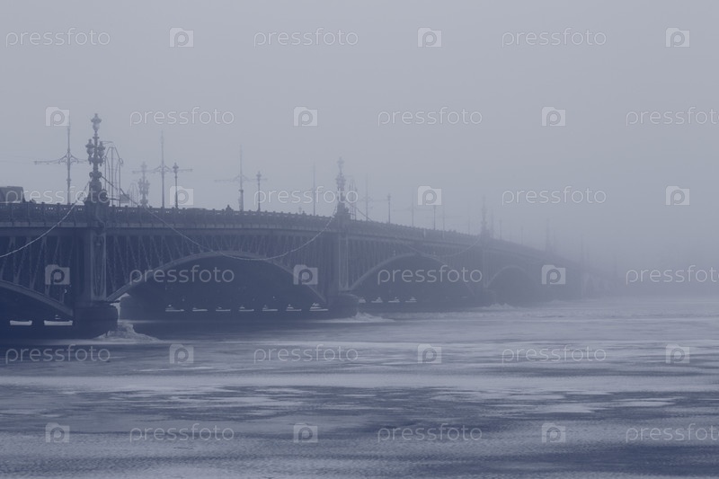 Мост Троицы в зимнем тумане. Санкт-Петербург. монохром