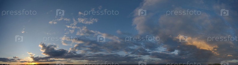 Россия.Юг Западной Сибири.Панорама вечернего летнего неба с многоцветными облаками над полями Кузнецкого Алатау