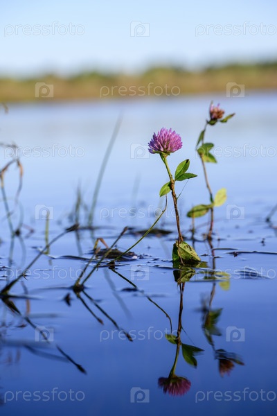 Цветок фиолетового клевера цветет в воде