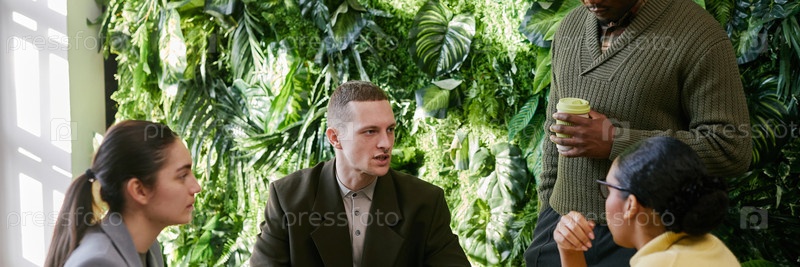 Заголовок изображения разнообразной бизнес-команды, сотрудничающей во время офисной встречи