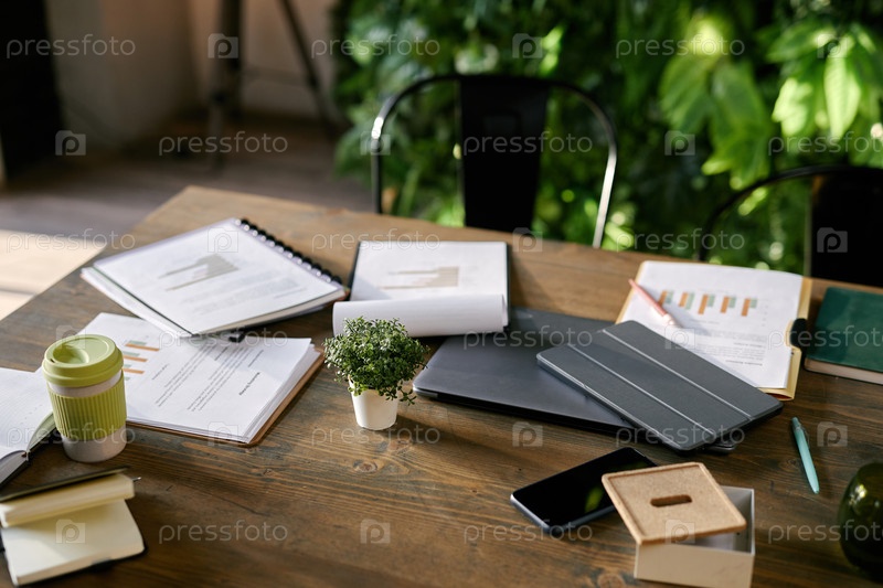 Офисный стол, отображающий деловые документы и современные цифровые устройства