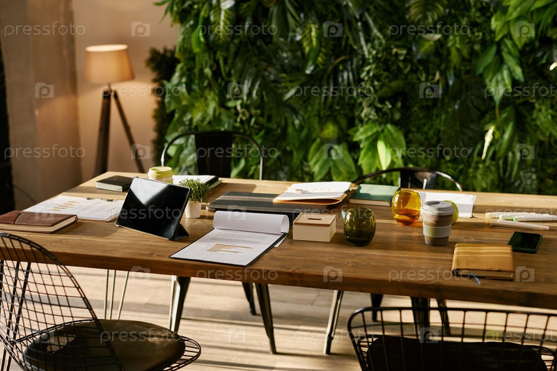 Современное деловое рабочее пространство с цифровыми устройствами и документами на столе