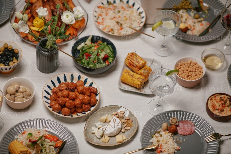 Сервируется со Средиземноморским ужином Распространяется с различными блюдами Стол
