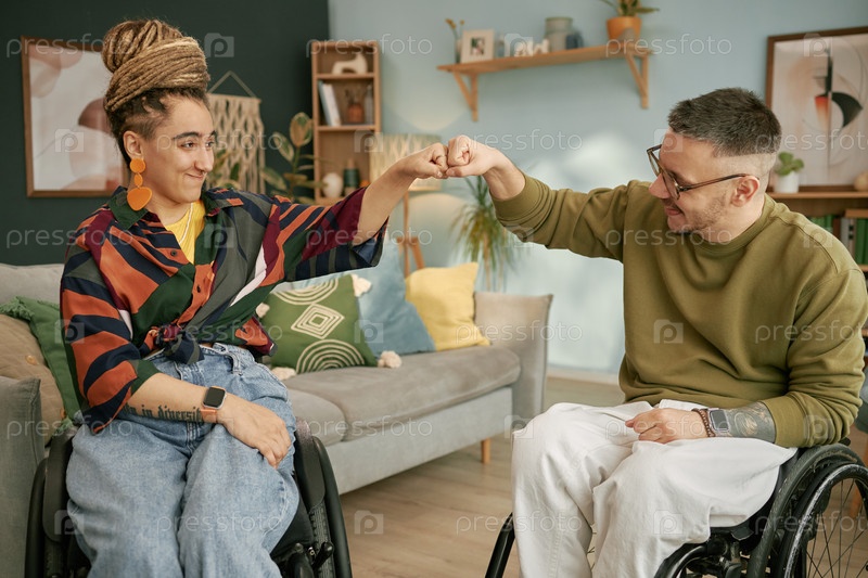 Молодые мультиэтнические взрослые с инвалидностью празднуют день рождения вместе в помещении