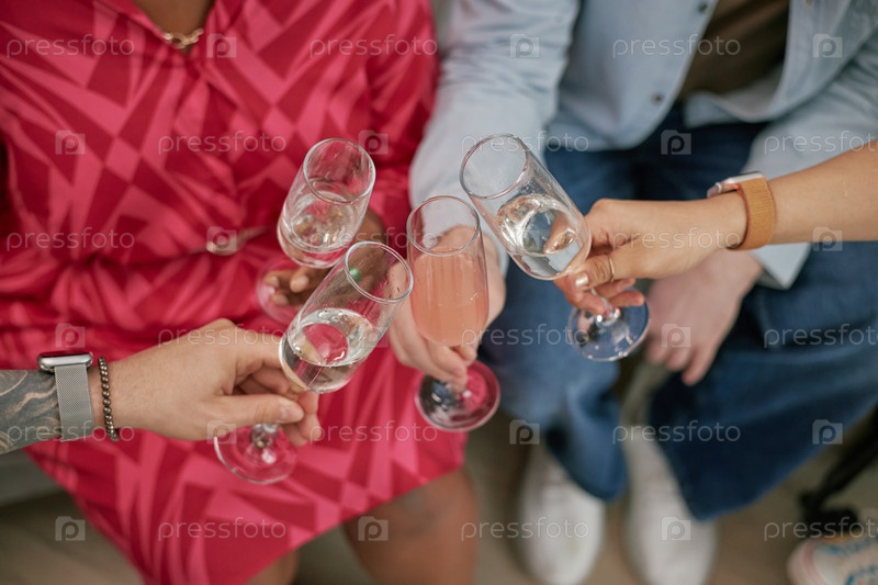 Мультиэтнические молодые взрослые приносят тосты за шампанское, празднуя день рождения вместе