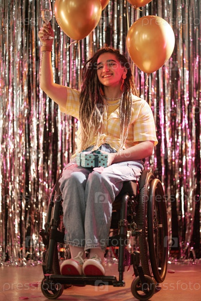 Портрет молодой взрослой женщины с инвалидностью, празднующей день рождения