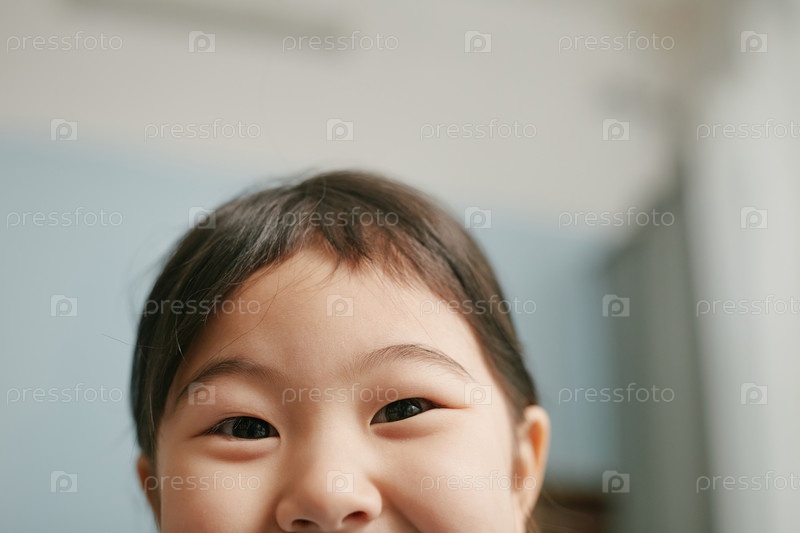 Близкий снимок маленькой азиатской девочки, глядящей в камеру
