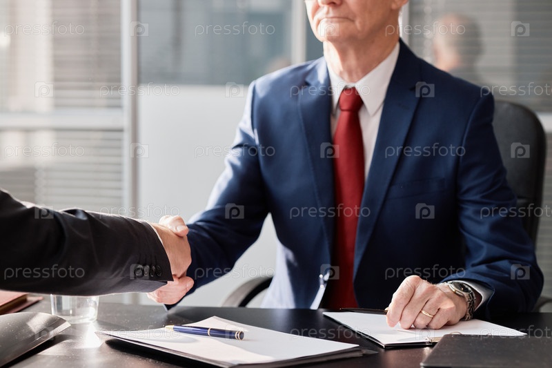 Старший мужчина пожимает руку бизнес-партнеру во время встречи
