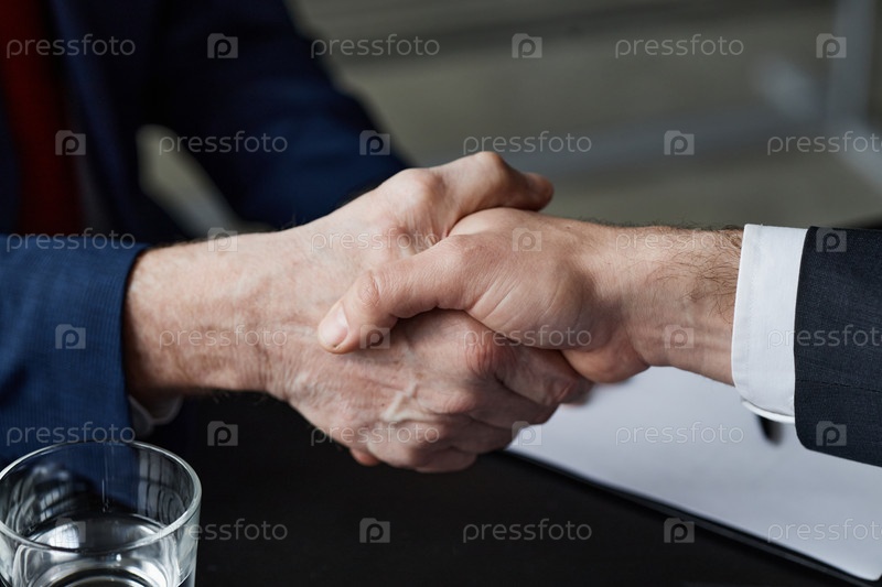 Мужчины среднего возраста, пожавшие руки во время деловой встречи в офисе