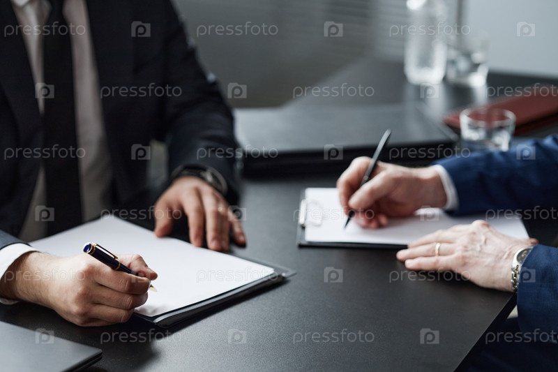 Зрелые мужчины подписывают документы во время деловой встречи