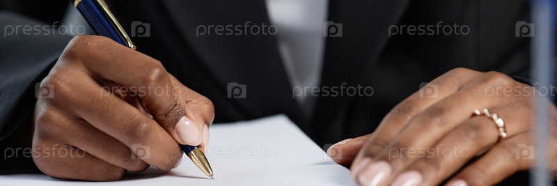 Header Image of Черная женщина, подписывающая документы во время деловой встречи