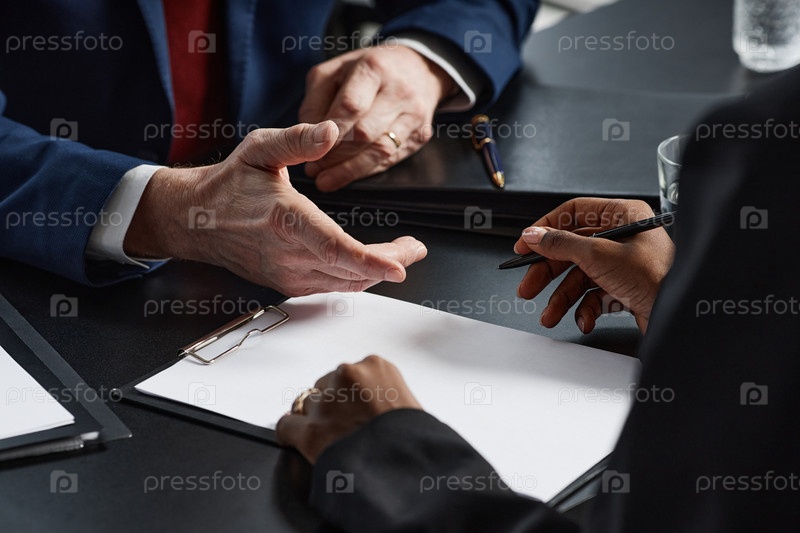 Обсуждение контракта с чернокожей женщиной, пишущей на бумаге на деловой встрече