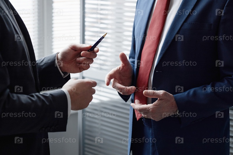 Мужчины среднего возраста обсуждают бизнес в офисе
