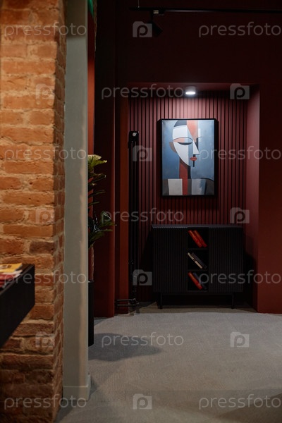 Абстрактная живопись с геометрическим лицом, висящей на стене в современном интерьере