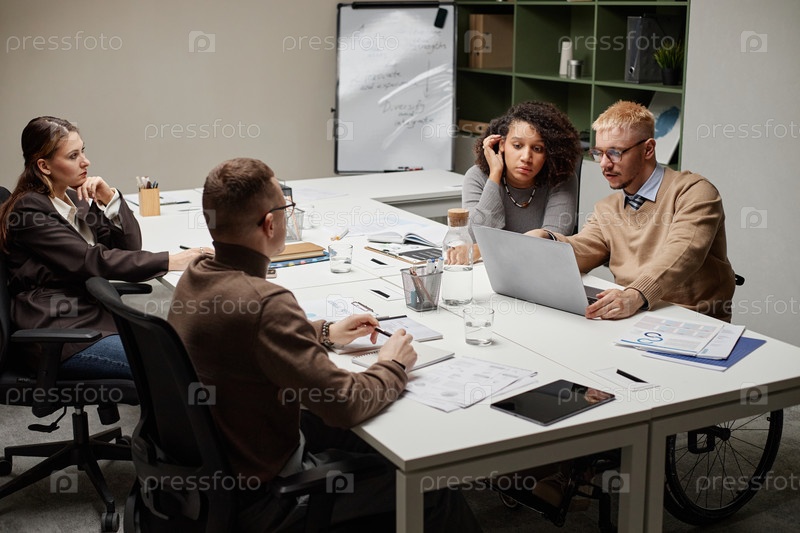 Различные молодые взрослые сотрудничают во время деловой встречи в офисной обстановке