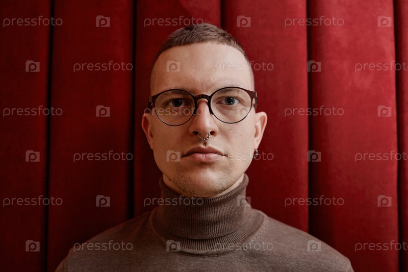 Портрет молодого взрослого мужчины в очках, смотрящего на камеру