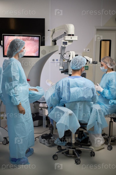 Мультиэтническая медицинская команда выполняет операцию в современной операционной