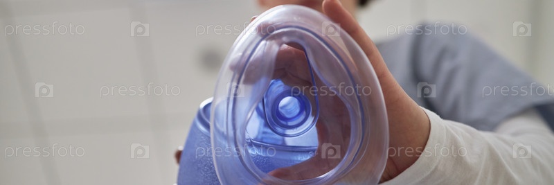 Женщина-медицинский работник готовит анестезическую маску в операционной