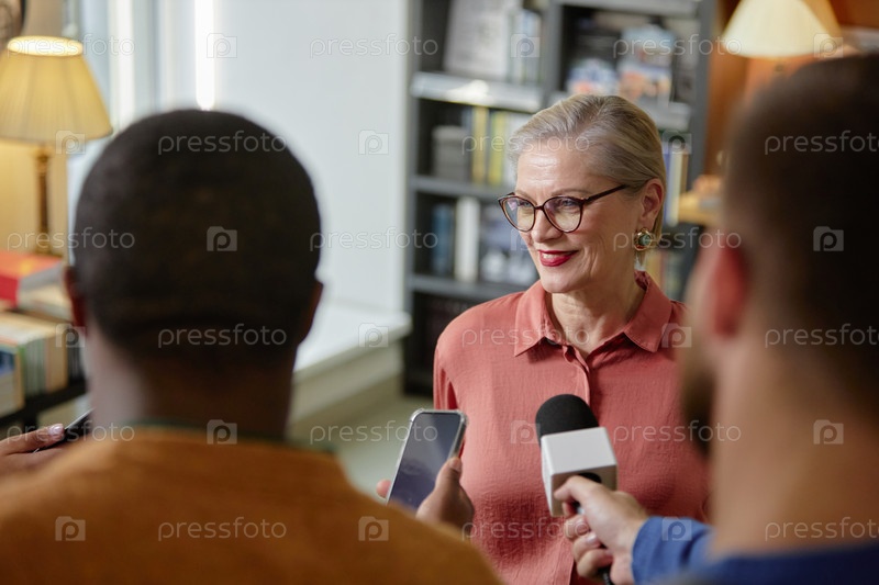 Старшая женщина улыбается, отвечая на вопросы во время собеседования