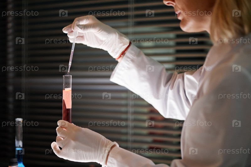 Женщина средних лет проводит химический эксперимент в лаборатории