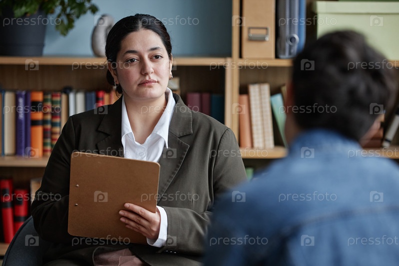 Женщина-консультант слушает подростка во время консультационной сессии